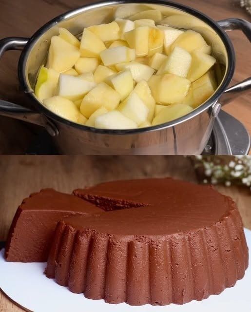 När äpplena är mjuka, tillsätt hackad mörk choklad. Rör om väl tills chokladen smälter helt och skapar en söt, krämig "kompott".