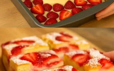 Mjuk kaka med färska jordgubbar, spara det här receptet, det är en riktig pärla