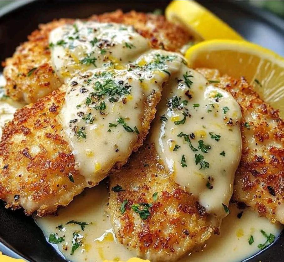 Krispiga kycklingbröst täckta i syrlig pecorino med en sammetslen citrongräddsås
