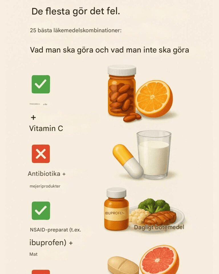 Varför detta inte fungerar: Kalcium kan binda till vissa antibiotika (som tetracykliner eller ciprofloxacin), vilket gör dem mindre absorberbara. Kontrollera alltid om ditt antibiotikum behöver tas på fastande mage eller med mjölkfria livsmedel.