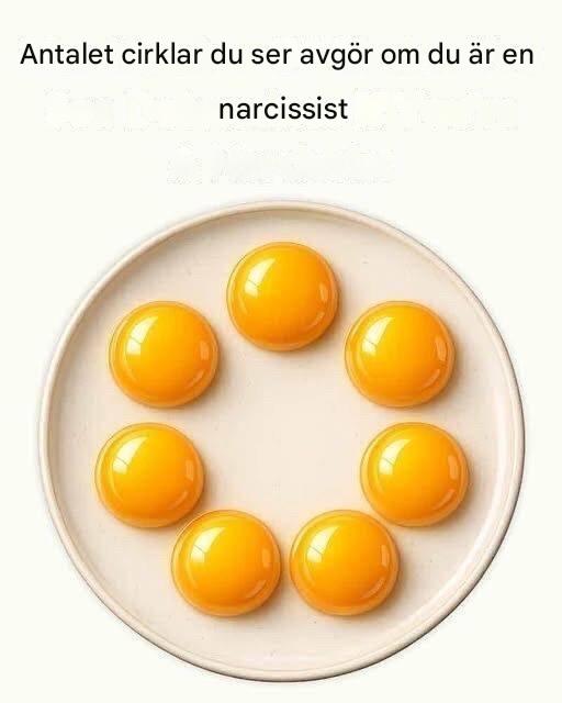 Vid första anblicken verkar bilder som "cirkelräkning" -illusionen ofarliga, lekfulla och till och med lite dumma - bara en annan snabb distraktion i den oändliga strömmen av onlineinnehåll. En tallrik, flera äggulor, en djärv rubrik som lovar att avslöja något djupt om din personlighet och en enkel instruktion: räkna hur många cirklar du ser. De flesta människor är instinktivt lyhörda. De pausar, lutar sig närmare skärmen och börjar räkna. I det ögonblicket händer något subtilt. Sinnet skiftar från passiv rullning till aktiv tolkning. Uppmärksamheten skärps. Nyfikenheten vaknar. Och plötsligt blir det som såg ut som en trivial bild ett litet psykologiskt experiment. Vissa ser bara de uppenbara formerna. Andra märker plattan, det tomma utrymmet, reflektionerna, skuggorna och till och med föreställda gränser. När människor jämför svar blir de ofta förvånade över hur olika dessa svar är. Denna variation skapar illusionen att bilden måste avslöja något djupt och personligt. Lägg till en provokativ etikett som "narcissisttest", och effekten blir ännu starkare. Bilden slutar vara underhållning och blir en spegel - en som verkar återspegla dolda sanningar om hur vi tänker, uppfattar och dömer oss själva. Men bakom denna uppenbara enkelhet ligger en komplex interaktion mellan uppfattning, uppmärksamhet, förväntan och mänsklig psykologi.