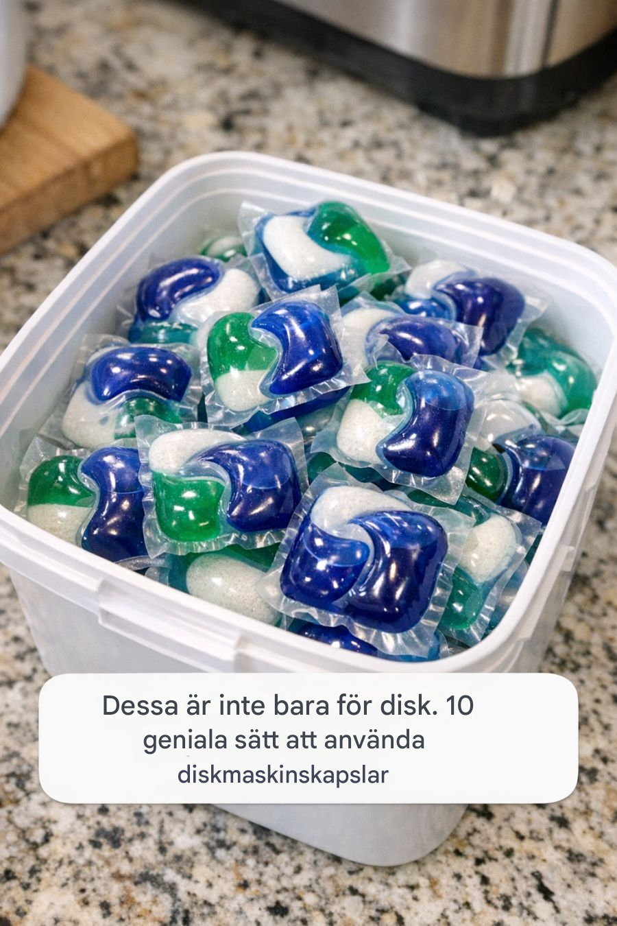 Vita sneakers kan snabbt förlora sin glans. För att fräscha upp dem, lös upp en diskmaskinskapsel i en hink med varmt vatten och sänk ner skorna i cirka 30 minuter.