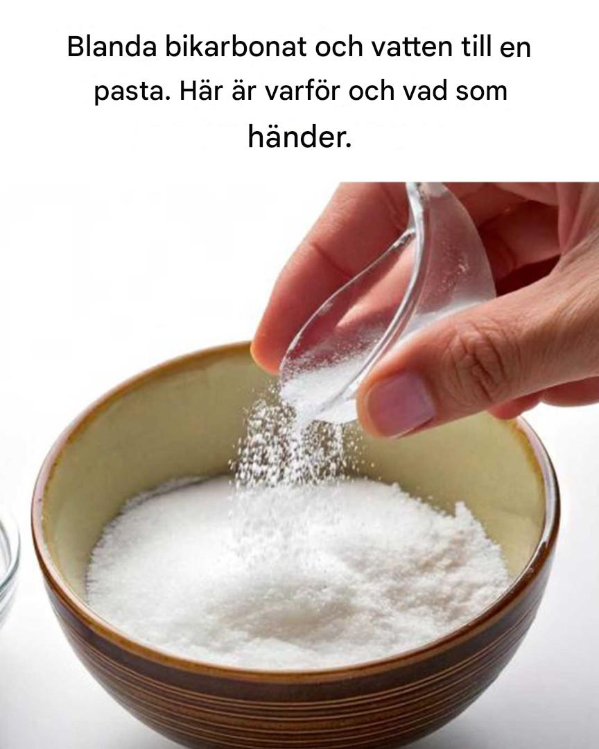 Att skapa en bakpulver och vattenpasta är otroligt enkelt. Allt du behöver är att baka läsk och vatten. Börja med att placera några matskedar bakpulver i en liten skål. Tillsätt vatten, några droppar i taget, samtidigt som blandningen rör om med en sked. Fortsätt tillsätta vatten tills du uppnår en tjock, bredbar pasta. Konsistensen ska likna tandkräm. Om pastan blir för rinnande, lägg helt enkelt till mer bakpulver för att tjockna den.