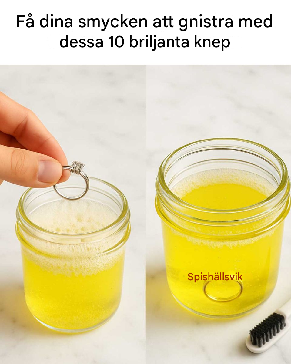 Vinäger är ett naturligt rengöringsmedel som effektivt kan rengöra och ljusa upp smycken. För en enkel rengöringslösning, blanda lika delar vit vinäger och vatten. Blötlägg dina smycken i lösningen i 15–20 minuter och använd sedan en mjuk borste för att skrubba bort eventuell kvarvarande smuts. Skölj med vatten och torka noggrant. Detta knep är särskilt användbart för guld- och ädelstenssmycken, eftersom vinäger är skonsamt men effektivt för att ta bort smuts.