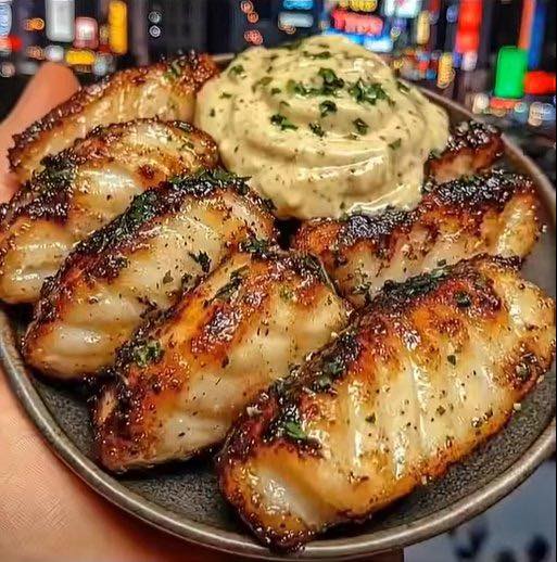 Krispiga på utsidan, flagnande och smöriga inuti – dessa munsbitar av fisk är kryddade med färsk citron och serveras med en len, vitlöksrik aioli. Perfekt som förrätt, mellanmål eller lättare måltid.