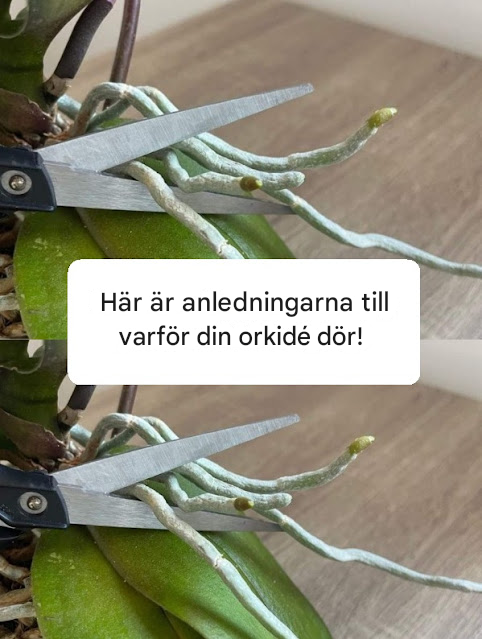 Närvaron av luftrötter betyder inte att orkidén behöver omplanteras. Se istället till att topparna på dessa rötter behåller en grön nyans, vilket indikerar god hälsa. Om rötterna blir gråaktiga kan de torka ut.