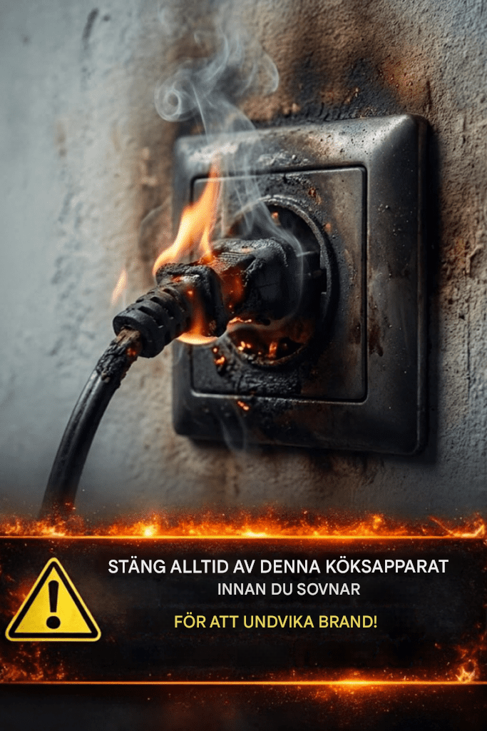 Överhettning av värmaren, särskilt om apparaten ligger nära brandfarliga föremål som gardiner, papper eller kökshandduk