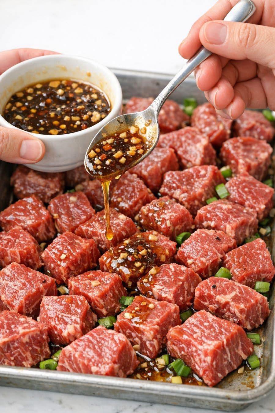 Klibbiga Honungs-, Vitlöks- och Oxfilébitar (Ugnsbakade)