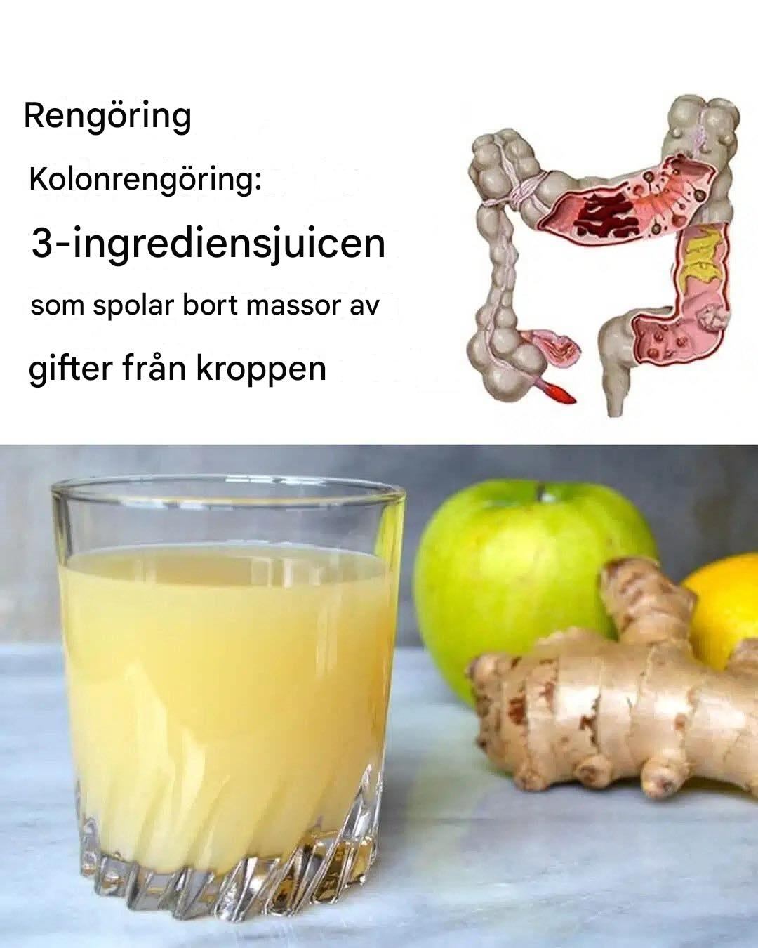Känner du dig uppblåst, har du matsmältningsbesvär eller upplever du en känsla av tyngd? Det här är vanliga tecken på att din tjocktarm kan vara överbelastad. En trög eller täppt tjocktarm kan leda till trötthet, matsmältningsbesvär och andra hälsoproblem. Lyckligtvis finns det en enkel, naturlig lösning som hjälper din kropp att rena sig själv: en detoxjuice gjord på äpplen, ingefära och citron. Denna dryck hjälper till att eliminera gifter och främjar en smidigare matsmältning. Så här fungerar den och hur du kan lägga till den i din rutin.