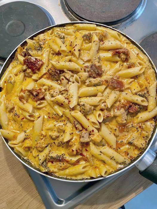 Krämig kycklingmozzarellapasta är en utsökt italienskinspirerad rätt med mör kyckling, seg mozzarella och perfekt tillagad pasta. Dess fylliga, sammetslena sås gör den till en publikfavorit, perfekt för familjemiddagar eller speciella tillfällen.