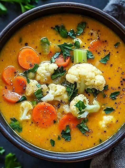 Denna läkande gurkmeja-grönsakssoppa är en lugnande, antiinflammatorisk skål som ger tröst och är perfekt för att stärka immunförsvaret, lugna matsmältningen och värma kroppen inifrån och ut. Gjord med enkla grönsaker, väldoftande kryddor och färsk citron, är denna soppa lätt men djupt mättande. Gurkmeja och spiskummin ger jordig värme, medan blomkål och morötter ger mild sötma och textur. Den är perfekt för detoxdagar, kalla kvällar eller när du behöver en närande återställning.