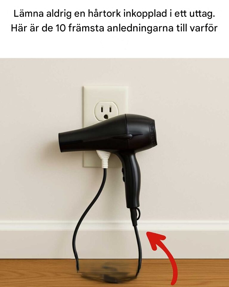 En av de största riskerna med att lämna en hårtork inkopplad är risken för elektrisk överbelastning, vilket kan leda till brand. Hårtorkar drar en avsevärd mängd ström, och om de lämnas inkopplade kan de orsaka överhettning av kretsar. Detta är särskilt farligt i äldre hem med föråldrad kabeldragning. Att se till att din hårtork är urkopplad när den inte används kan avsevärt minska risken för elektriska bränder.
