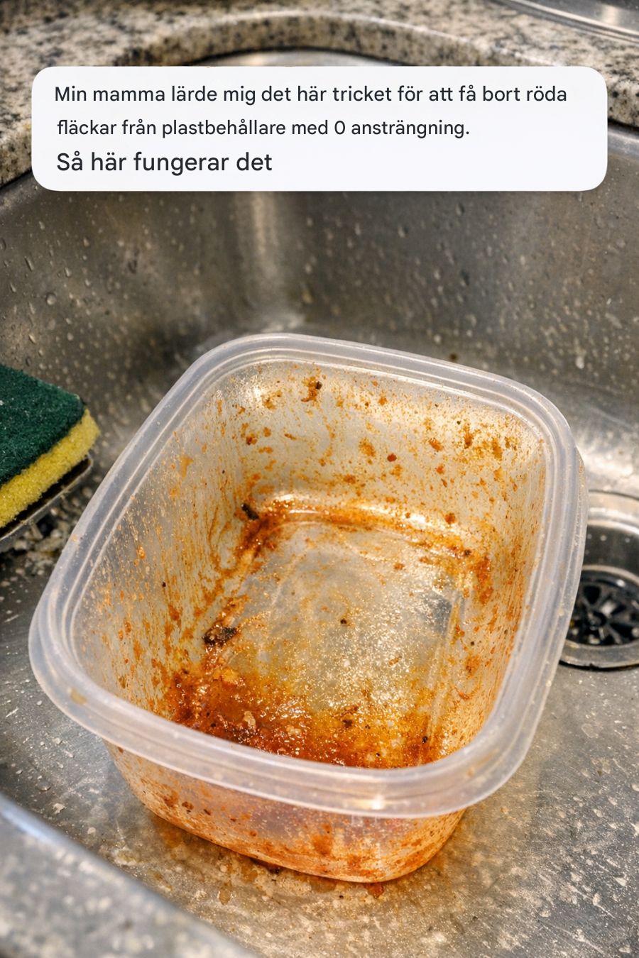 Vi har alla upplevt frustrationen över att öppna våra köksskåp för att hitta plastbehållare färgade med envisa röda märken från gårdagens pastasås eller gårdagens curry. Dessa fläckar gör inte bara att våra behållare ser fula ut utan kan också vara otroligt svåra att ta bort, vilket gör att många av oss frestas att kasta ut dem och börja färskt. Lyckligtvis finns det ingen anledning att gå till sådana ytterligheter, eftersom min mamma lärde mig ett enkelt trick som enkelt återställer dina behållare till deras orörda tillstånd.