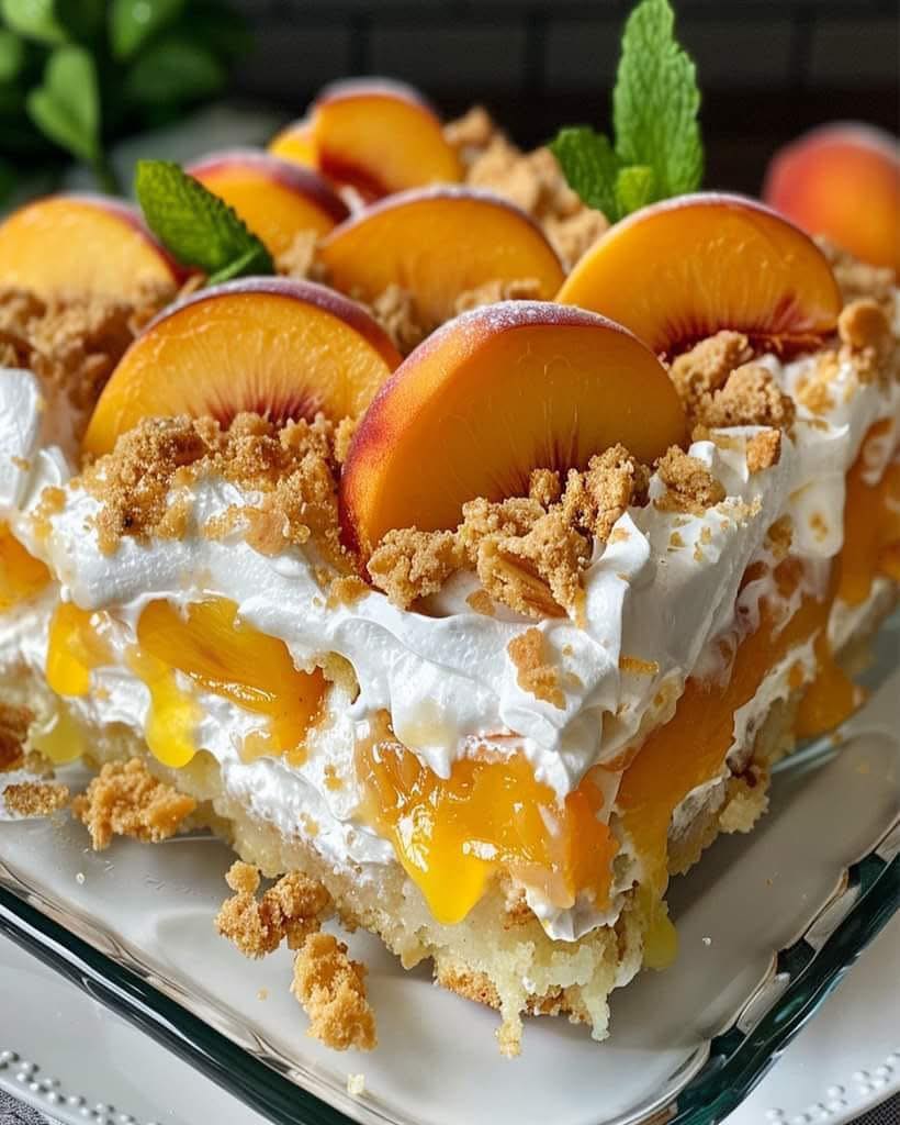 Det här receptet erbjuder en härlig twist på den klassiska persikobakaren , förvandlad till en rolig och enkel poke- kaka . Lager av saftig kaka, söt persikofyllning och krämig vispad grädde skapar tillsammans en verkligt oemotståndlig dessert.