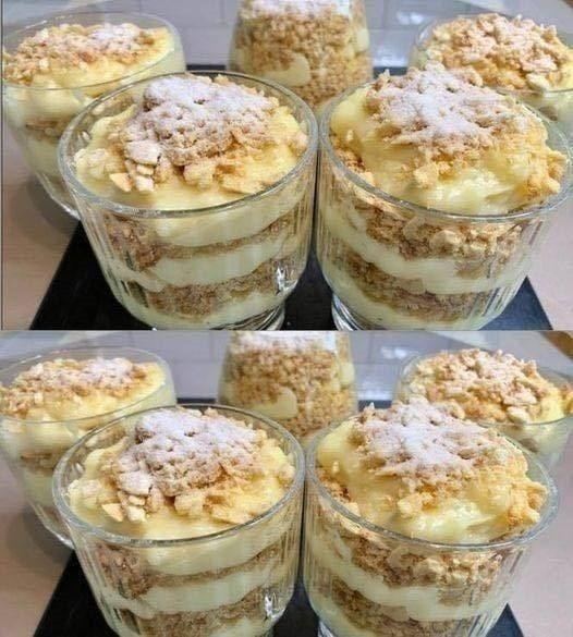 Lägg 2 matskedar sandsmulor i glas eller koppar.