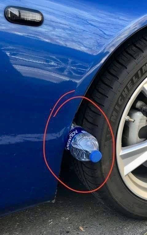 En sådan situation involverar en plastflaska som sitter fast mellan bilens däck och ram . Om du någonsin ser detta på ditt fordon, var uppmärksam och agera snabbt . Detta är inte ett ofarligt skämt – det kan vara ett tecken på ett försök till bilkapning . Ring i så fall 112 omedelbart .