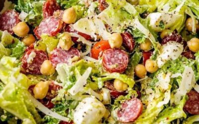 Berömd La Scala-hackad sallad En uppfriskande och finhackad sallad laddad med krispiga grönsaker, kikärter, salami och mozzarella, blandad i en…