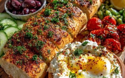 Rustikt medelhavsbröd och kryddig fetaostbräda