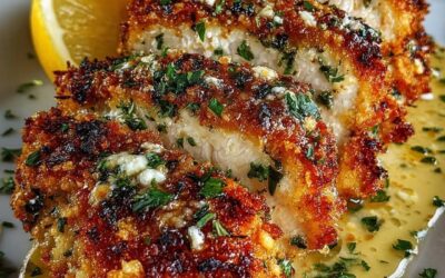 Kryddig, krispig, varm honungs-, citron- och fetaostkyckling med parmesan- och örtbotten Ingredienser För kycklingen 4 benfria, skinnfria kycklingbröst 1 tesked…