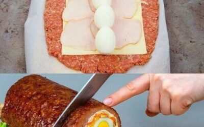Denna fyllda köttfärsrulle är en fantastisk mittpunkt och fylld med smält ost, kalkonskivor och hela kokta ägg – vilket skapar…