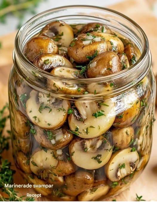 Marinerade svampar är en smakrik och mångsidig rätt som är perfekt som mellanmål, aptitretare eller salladstopping.