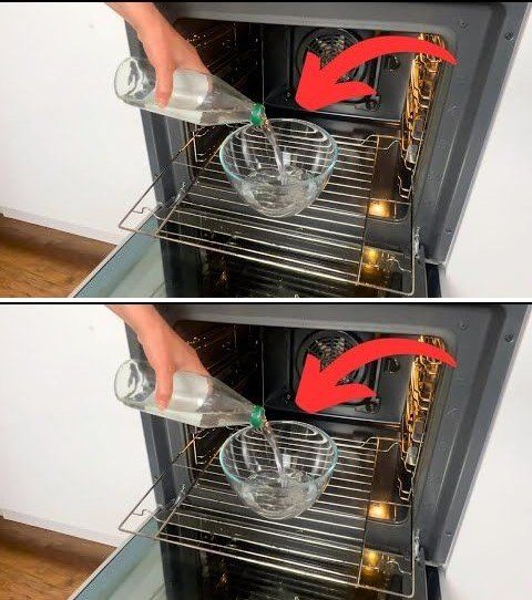 Spraya med vinäger: När ugnen har svalnat något, fyll en sprayflaska med vit vinäger. Spraya lätt insidan av ugnen, särskilt där fett och fläckar är synliga. Vinägersyran bryter ner fett eller matrester.
