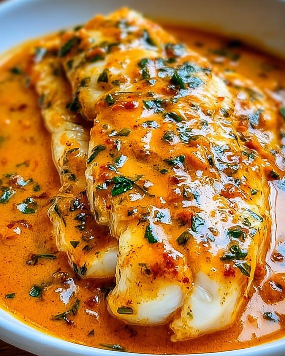 Stekta tilapiafiléer med rökt rostad röd paprika-vitlökssås