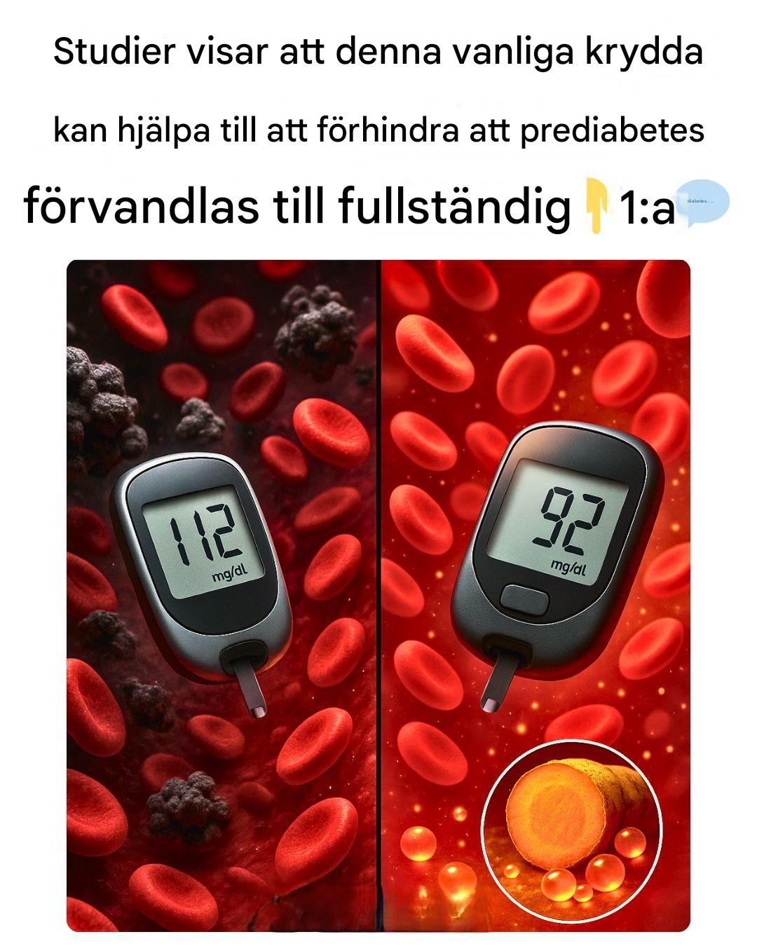 År 2012 publicerades en randomiserad, kontrollerad studie i American Diabetes Associations tidskrift, Diabetes Care, med ett fantastiskt resultat. Forskare i Thailand gav ett dagligt curcuminextrakt till en grupp på 240 patienter som diagnostiserats med prediabetes. Efter nio månader hade inte en enda person i curcumingruppen utvecklat typ 2-diabetes. Däremot utvecklades 16,4 % av deltagarna som tog placebo till en fullständig diabetesdiagnos. Curcumin stoppade inte bara sjukdomen; det förbättrade också funktionen hos insulinproducerande celler och minskade insulinresistensen, allt med endast mindre rapporterade biverkningar.