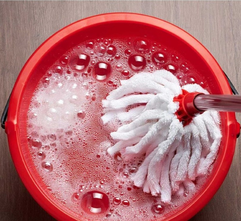 – Lägg lite salt i vattnet. Salt kan torka golvet snabbt och kan även fungera som desinfektionsmedel och steriliseringsmedel.