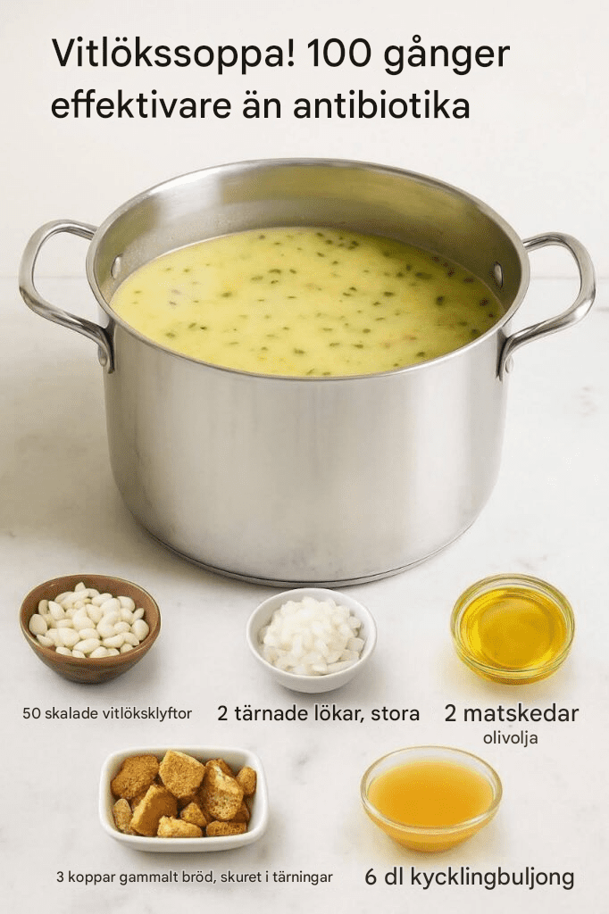 är en soppa rik på allicin, ett kraftfullt antibakteriellt medel som finns i vitlök.